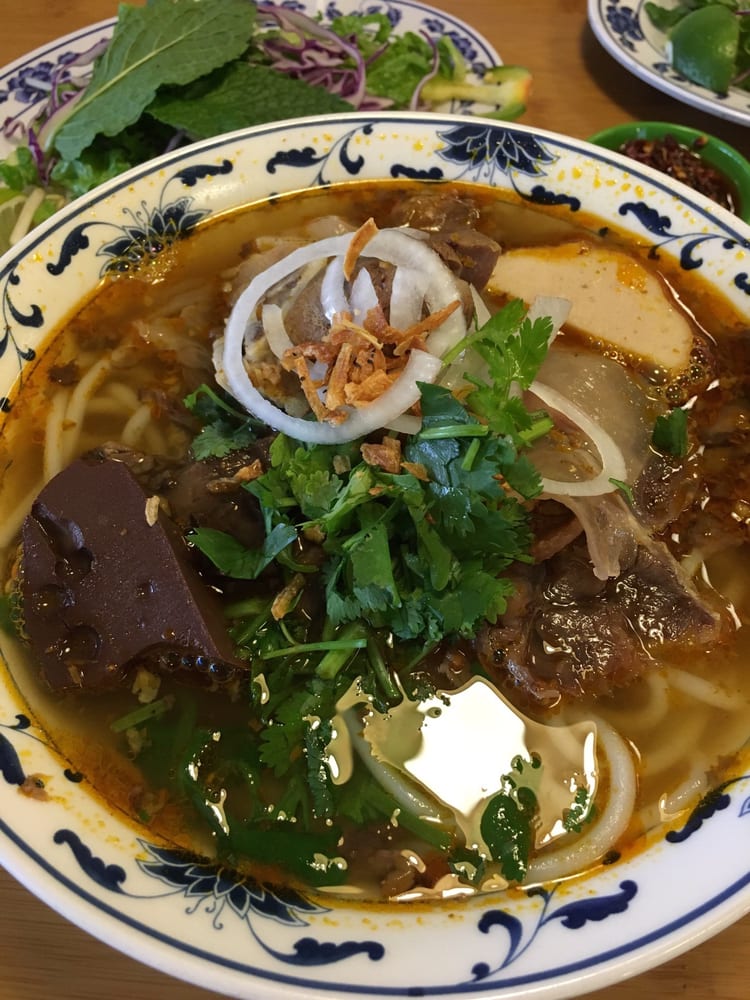One of the better bun bo hue and they actually will do extra spicy correctly. This is my go to order and the only reason for coming. Although the raw beef salad is good and the fish sauce chicken is quite delicious too. Skip the curry chicken - while it's tasty, it's quite odd to have shredded chicken.Only tried this place because next door was closed for vacation so consider it a blessing.